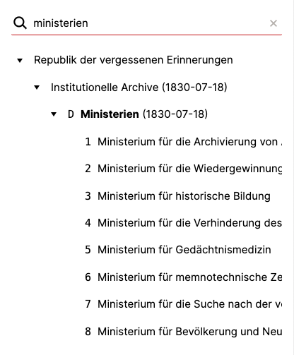 You can quickly filter the tectonics by a string using the search field at the top. Only units whose titles contain the entered string are then displayed. This matching string is highlighted in bold in the title.